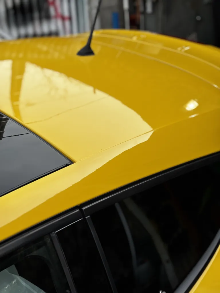 Le polissage permet d’éliminer les micro-rayures, d’uniformiser le vernis et de raviver la brillance d’origine. Réalisé en une à trois passes, selon l’état de la peinture, il redonne à la carrosserie un effet voiture neuve.